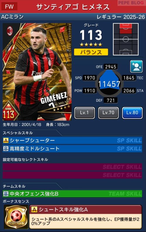 - 2.20 FW:☆5 グレード113 サンティアゴ ヒメネス