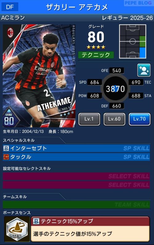 - 2.8 DF:☆4 グレード80 ザカリー アテカメ
