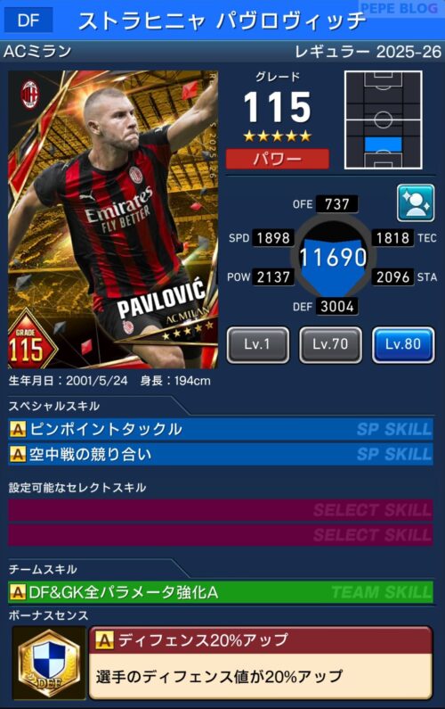 - 2.6 DF:☆5 グレード115 ストラヒニャ パヴロヴィッチ