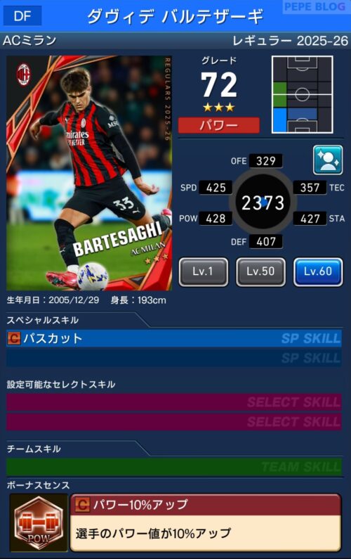 - 2.9 DF:☆3 グレード72 ダヴィデ バルテザーギ