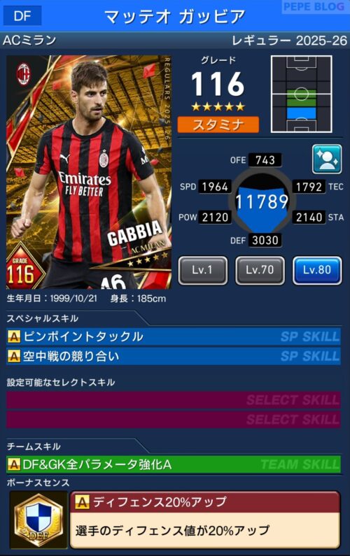 - 2.3 DF:☆5 グレード116 マッテオ ガッビア