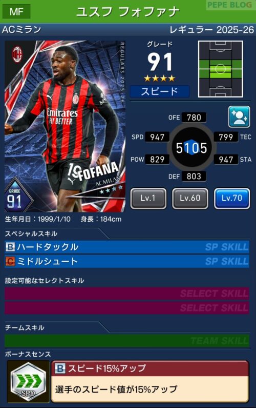 - 2.16 MF:☆4 グレード91 ユスフ フォファナ