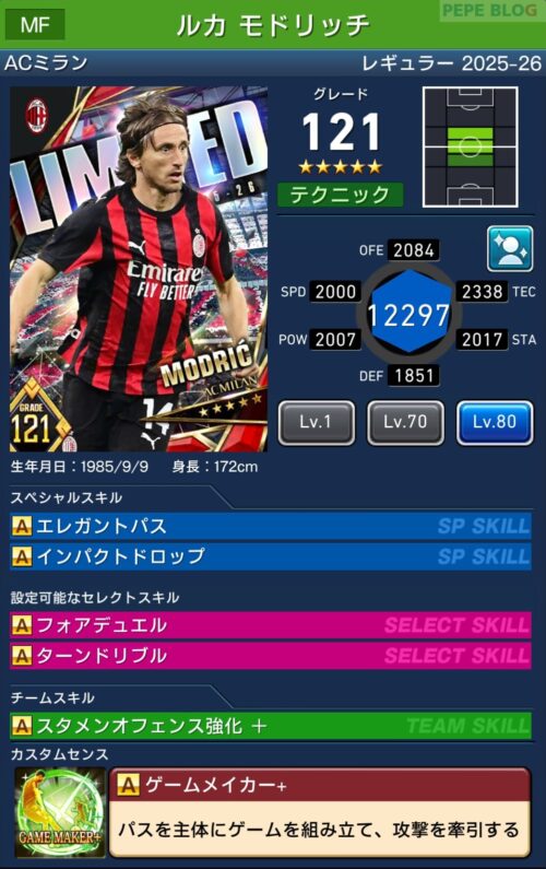 - 2.11 MF:☆5 グレード121 ルカ モドリッチ