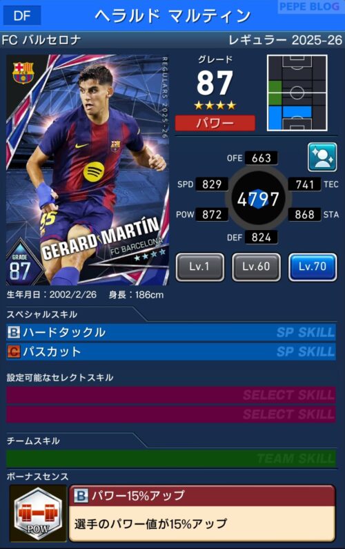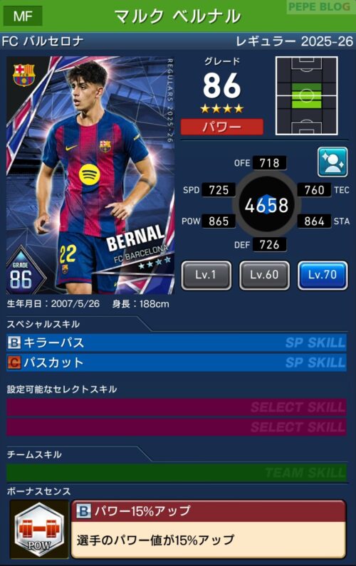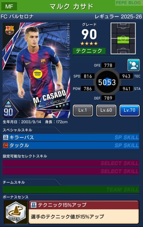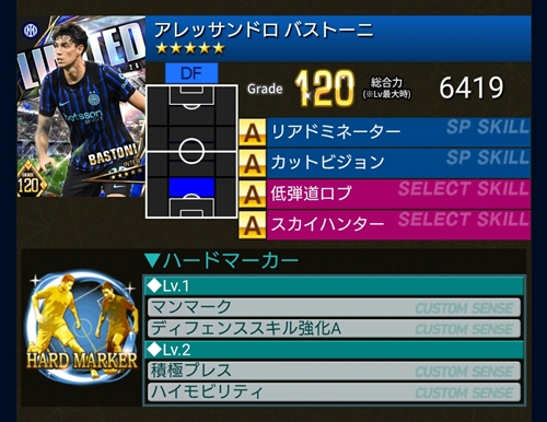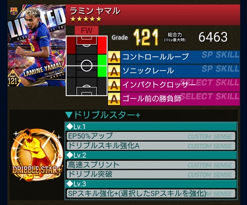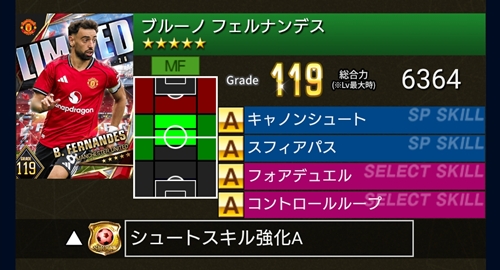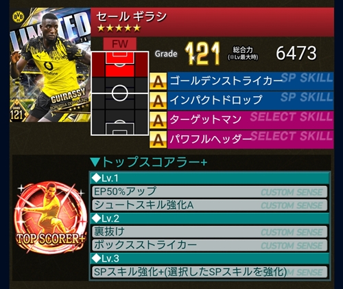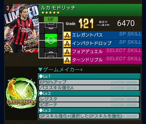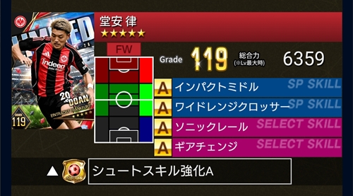 レベル3の効果は「SPスキル強化+」となっており、選手が所持しているスキルの中から一つを選び、強化をすることが可能になります。