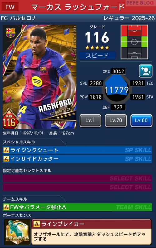 FW:☆5 グレード116 マーカス ラッシュフォード