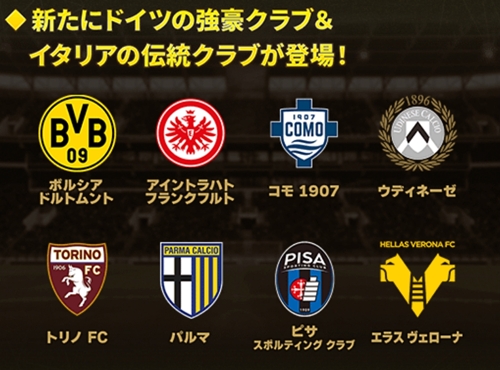 新たにドイツの強豪クラブ&イタリアの伝統クラブが登場!