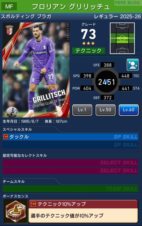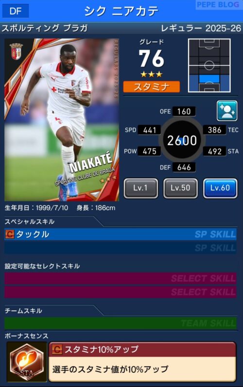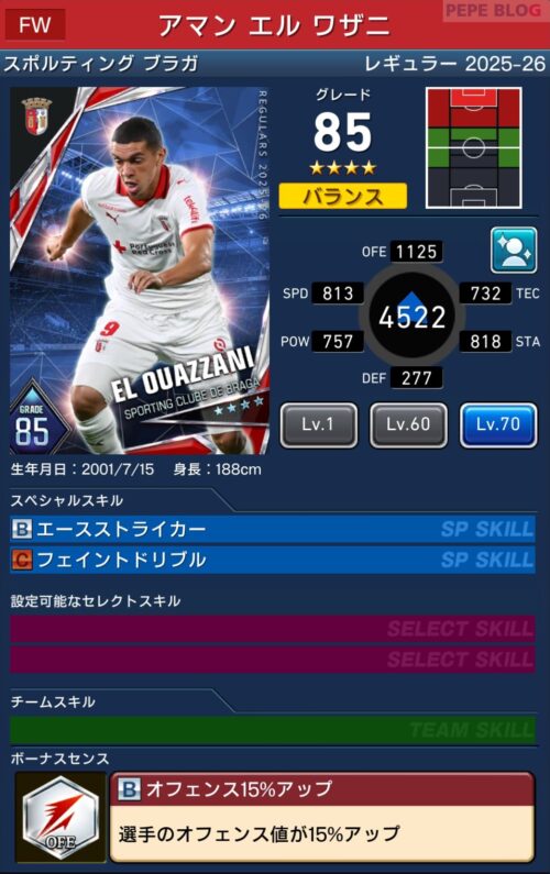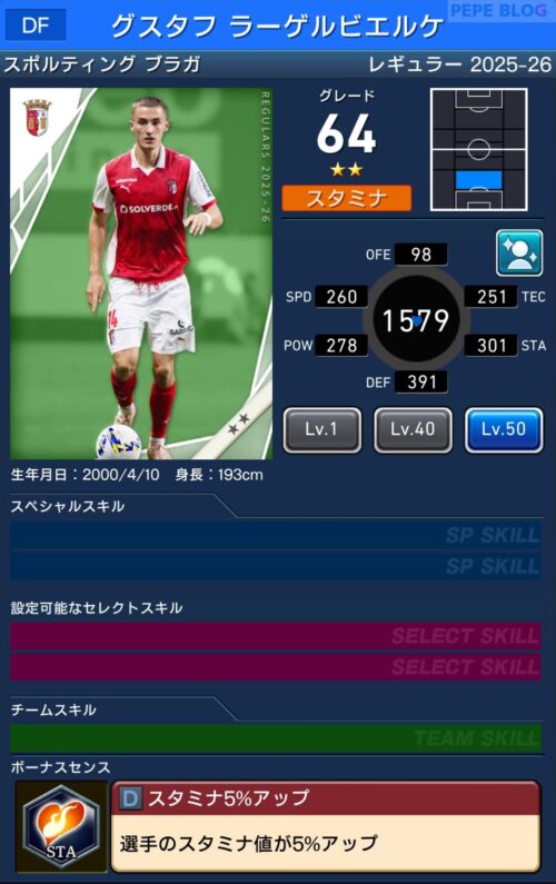レベル3の効果は「SPスキル強化+」となっており、選手が所持しているスキルの中から一つを選び、強化をすることが可能になります。