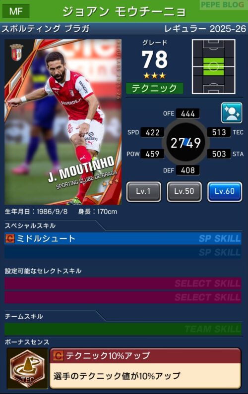 - 2.12 MF:☆3 グレード78 ジョアン モウチーニョ