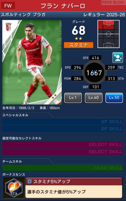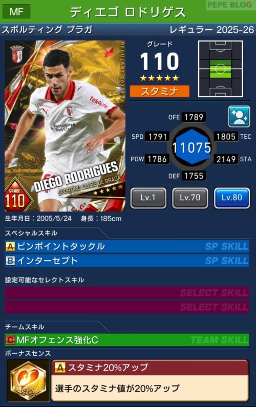 - 2.9 MF:☆5 グレード110 ディエゴ ロドリゲス