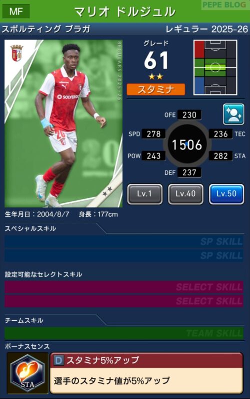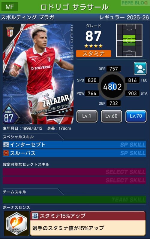 - 2.11 MF:☆4 グレード87 ロドリゴ サラサール