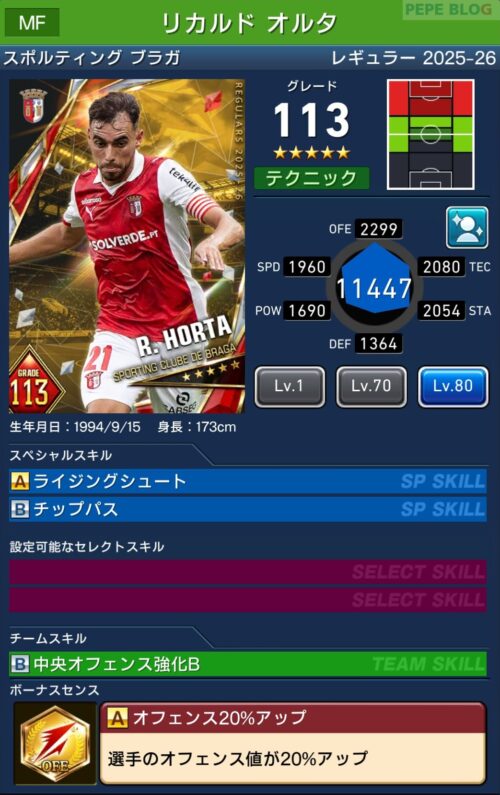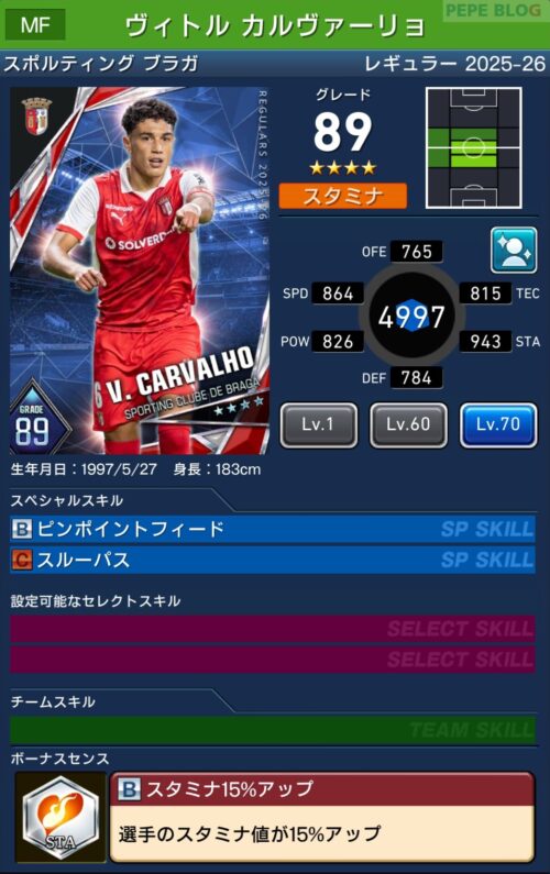 - 2.10 MF:☆4 グレード89 ヴィトル カルヴァーリョ