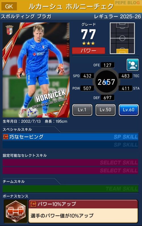 - 2.1 GK:☆3 グレード77 ルカーシュ ホルニーチェク