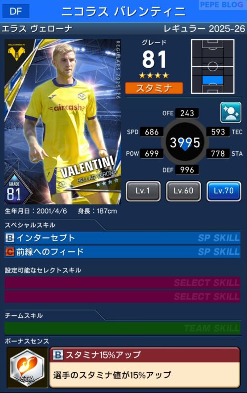 DF:☆4 グレード81 ニコラス バレンティニ