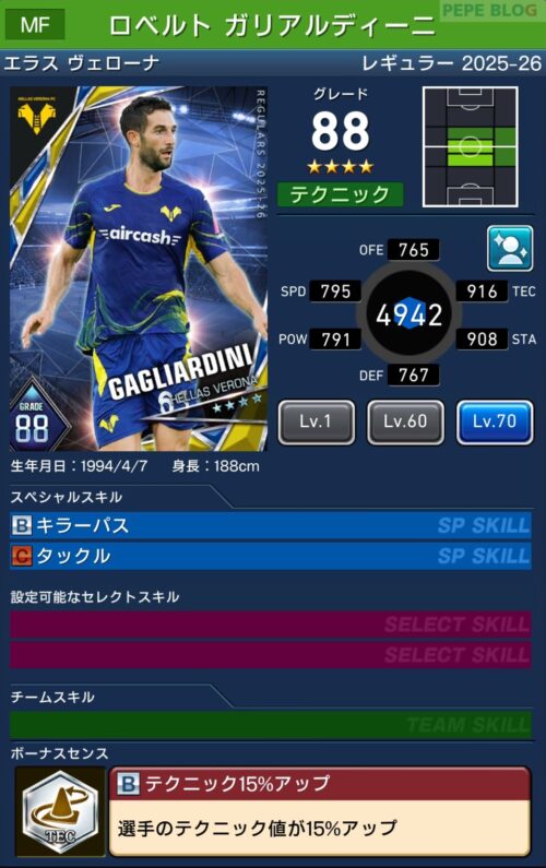 MF:☆4 グレード88 ロベルト ガリアルディーニ