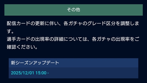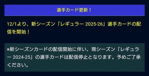 2025/12/01より、新シーズン「レギュラー2025-26」カードの配信が開始されます。