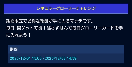 毎日1回、レギュラーグローリーカードを入手できる特別なマッチに挑むことができます。