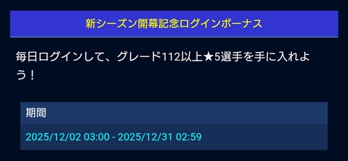 2025/11/29に「レギュラーシリーズ新シーズン開幕記念キャンペーン」が予告されています。