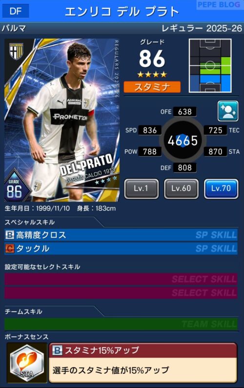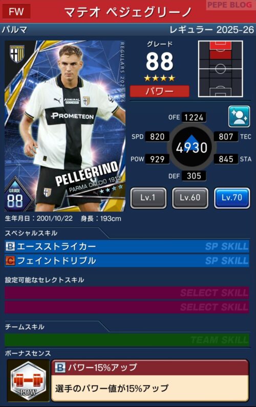 - 2.16 FW:☆4 グレード88 マテオ ペジェグリーノ