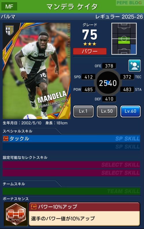 - 2.11 MF:☆3 グレード75 マンデラ ケイタ