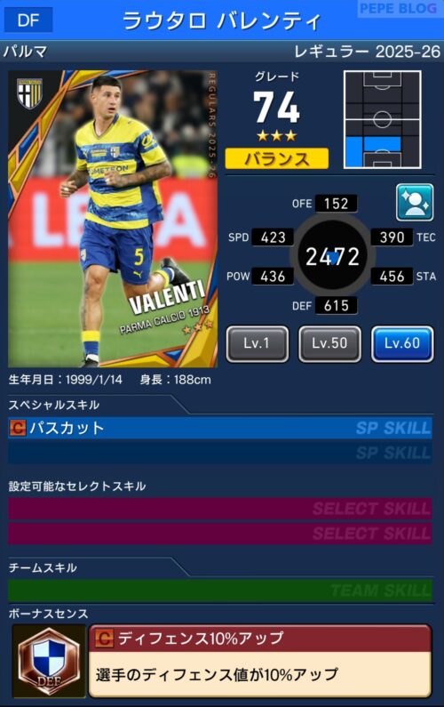 - 2.6 DF:☆3 グレード74 ラウタロ バレンティ