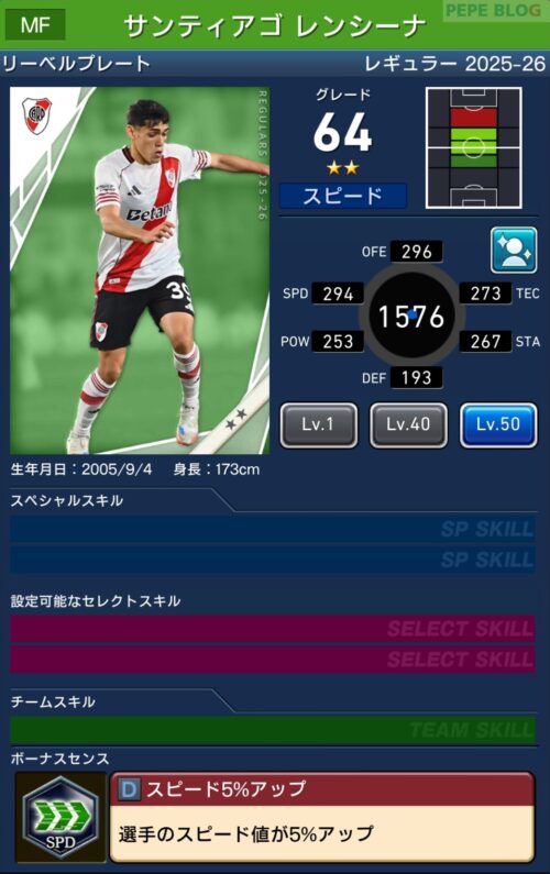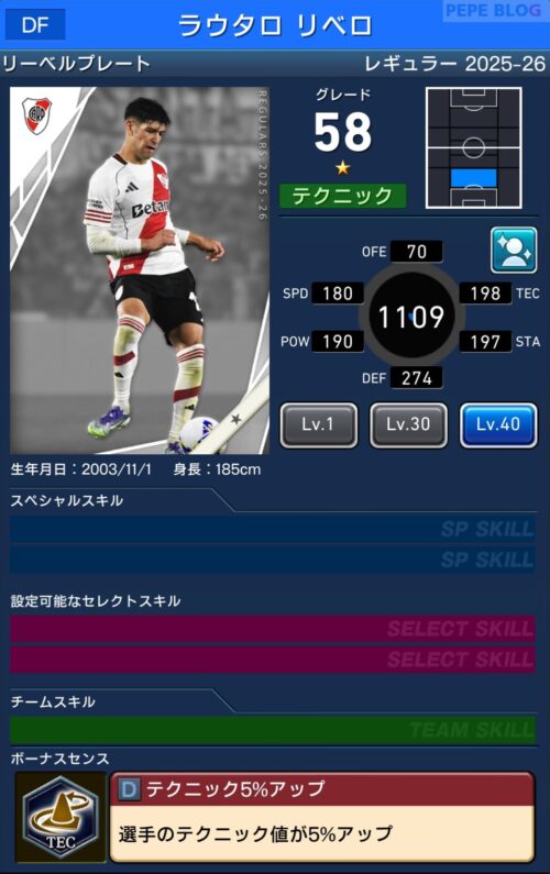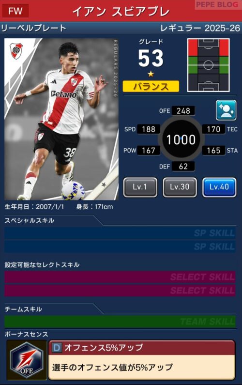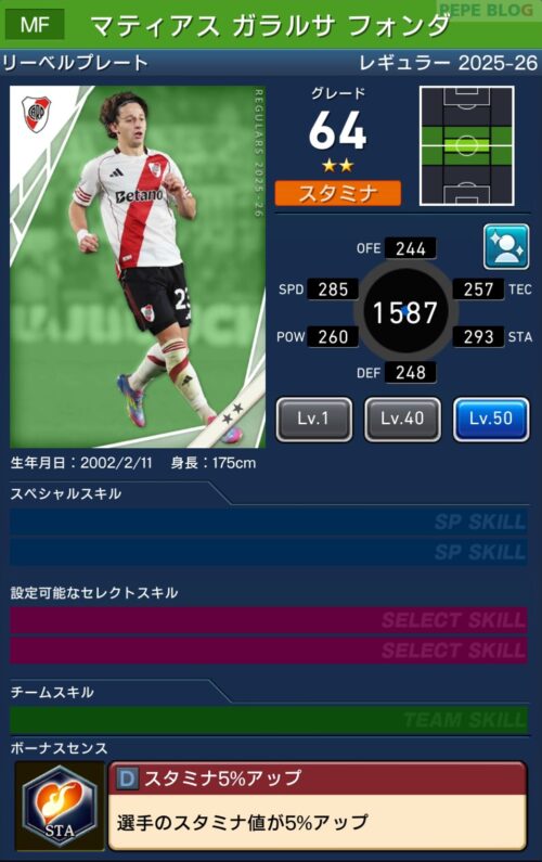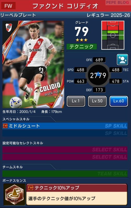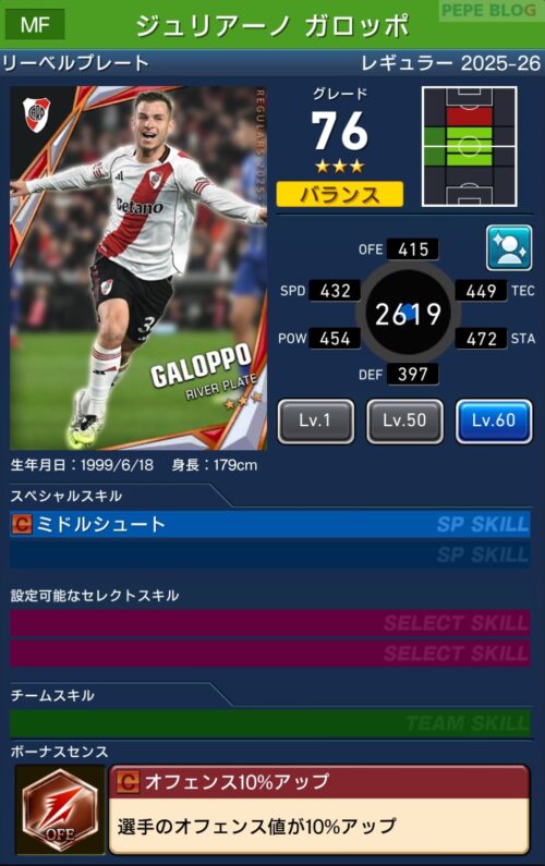 レベル3の効果は「SPスキル強化+」となっており、選手が所持しているスキルの中から一つを選び、強化をすることが可能になります。