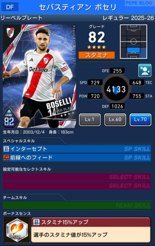 - 2.4 DF:☆4 グレード82 セバスティアン ボセリ