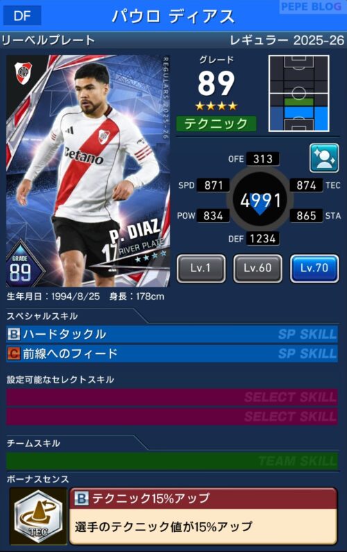 - 2.3 DF:☆4 グレード89 パウロ ディアス