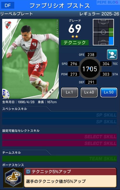 - 2.7 DF:☆2 グレード69 ファブリシオ ブストス