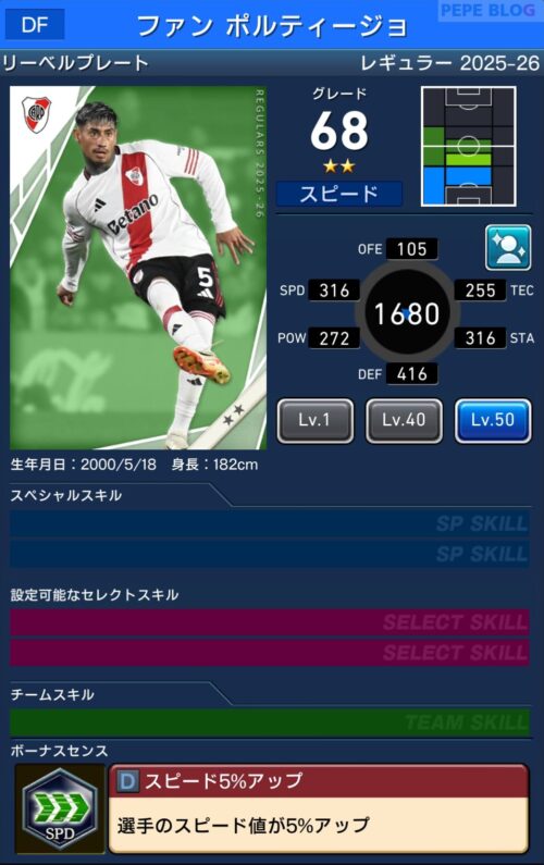 - 2.8 DF:☆2 グレード68 ファン ポルティージョ