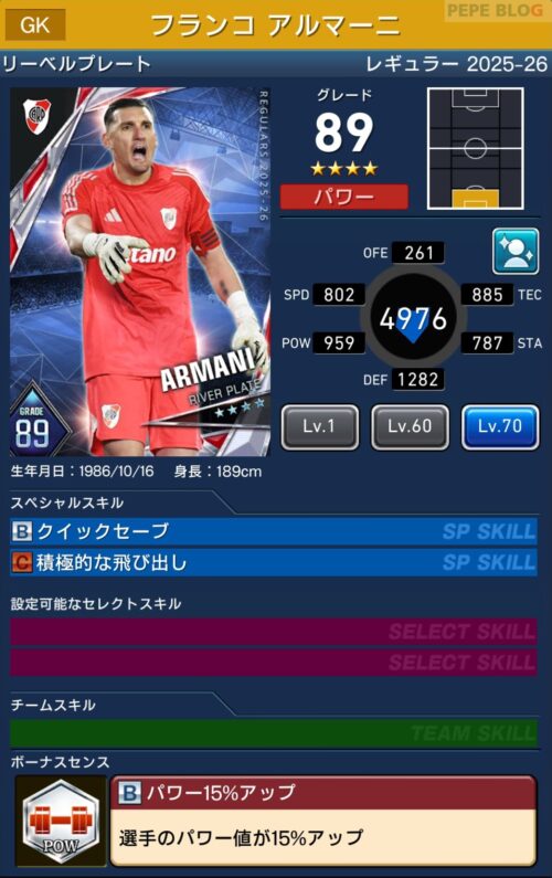 - 2.1 GK:☆4 グレード89 フランコ アルマーニ
