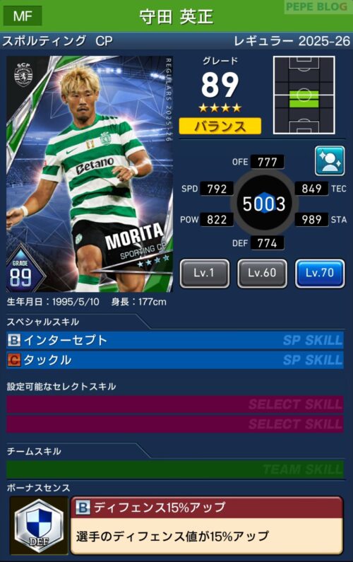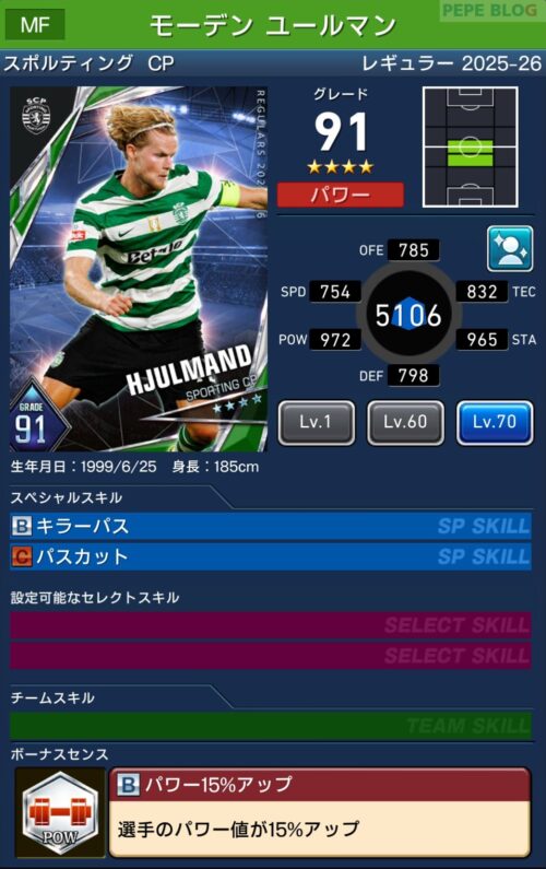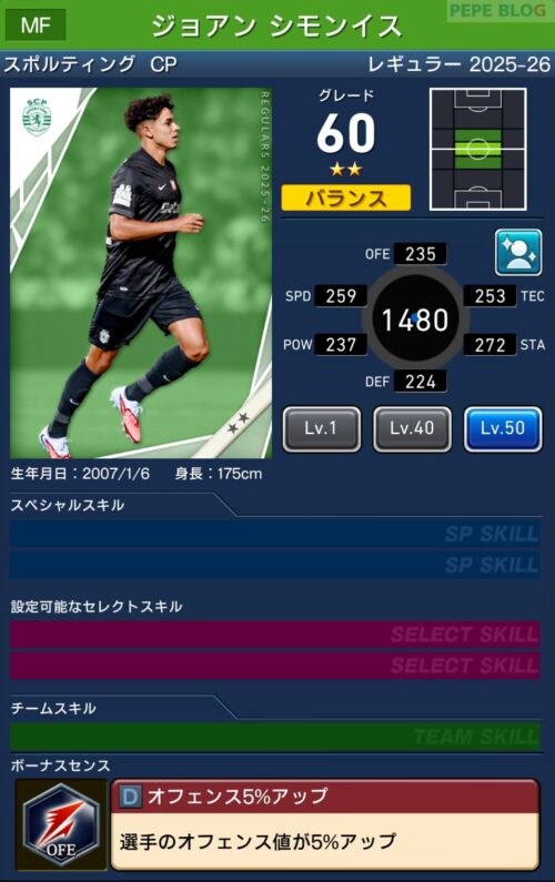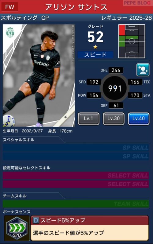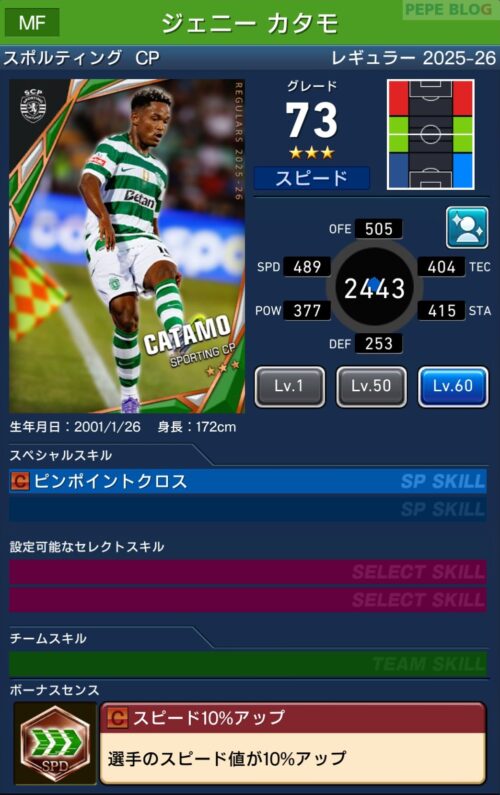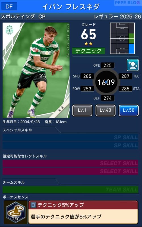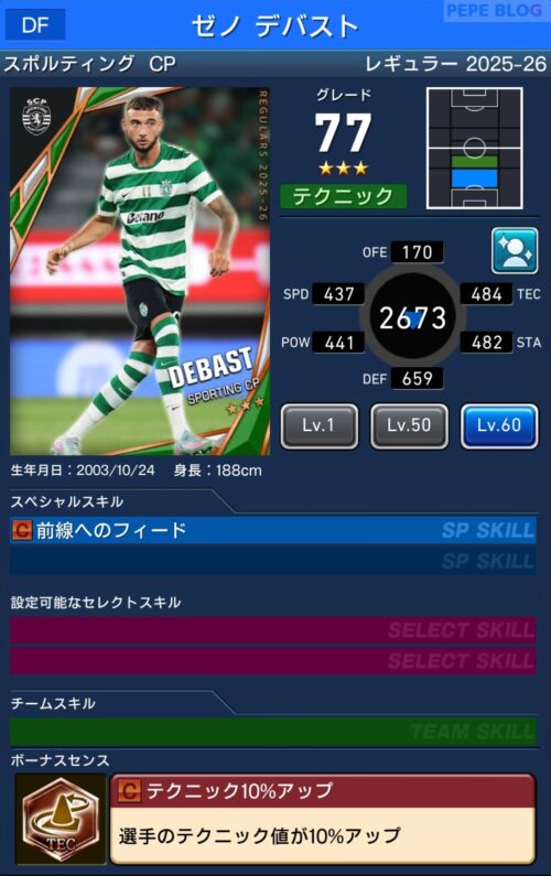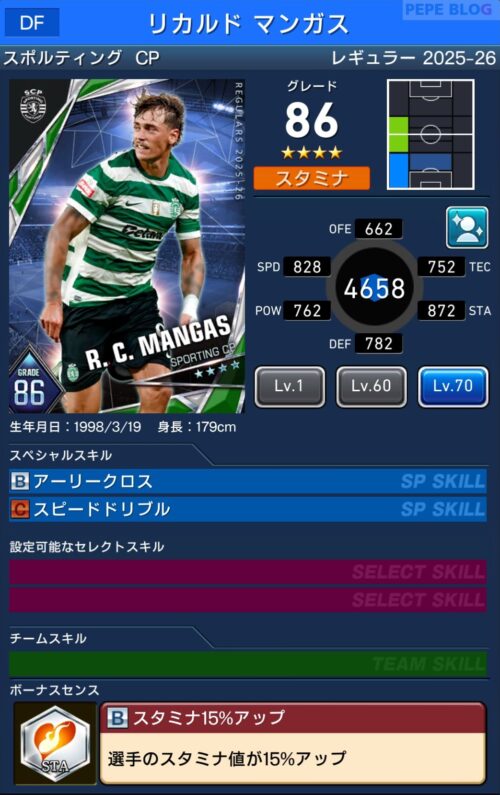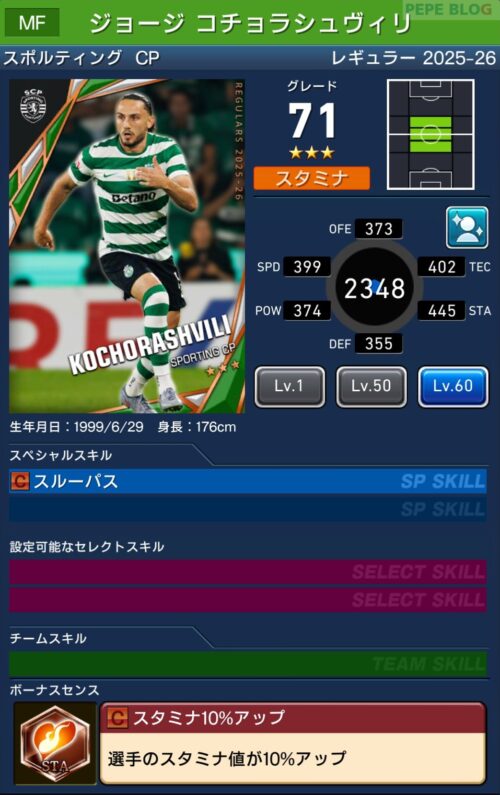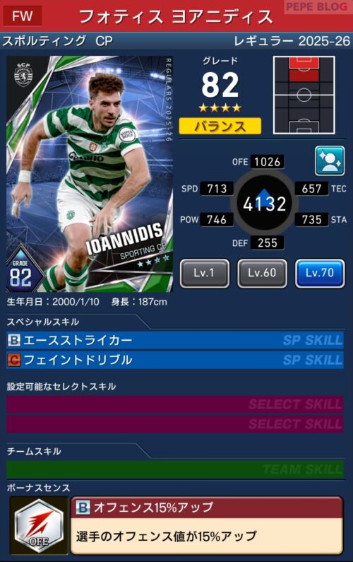 レベル3の効果は「SPスキル強化+」となっており、選手が所持しているスキルの中から一つを選び、強化をすることが可能になります。