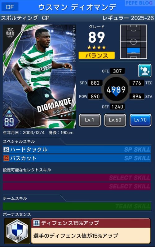 DF:☆4 グレード89 ウスマン ディオマンデ