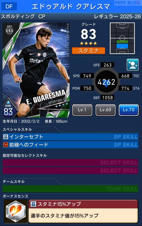 - 2.5 DF:☆4 グレード83 エドゥアルド クアレスマ