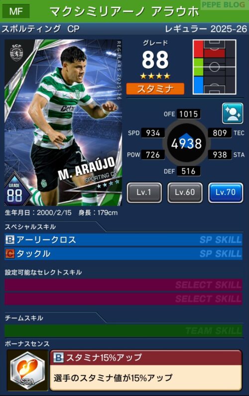 - 2.12 MF:☆4 グレード88 マクシミリアーノ アラウホ