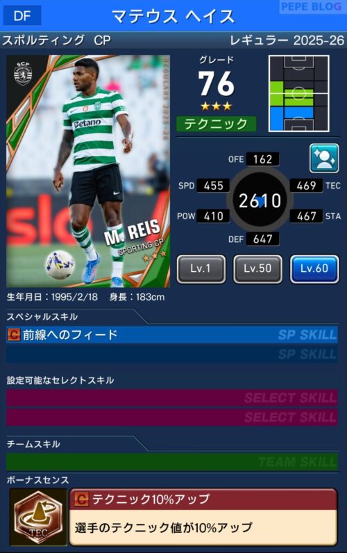 - 2.7 DF:☆3 グレード76 マテウス ヘイス