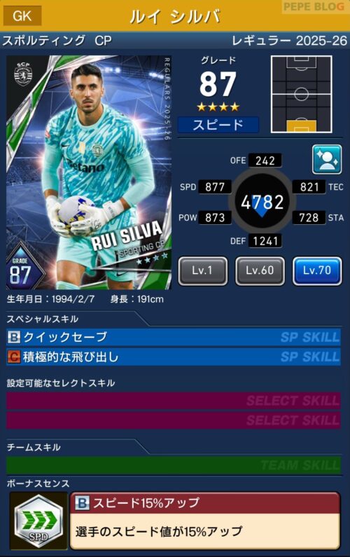 - 2.1 GK:☆4 グレード87 ルイ シルバ