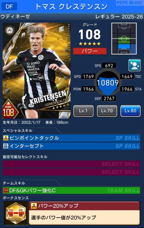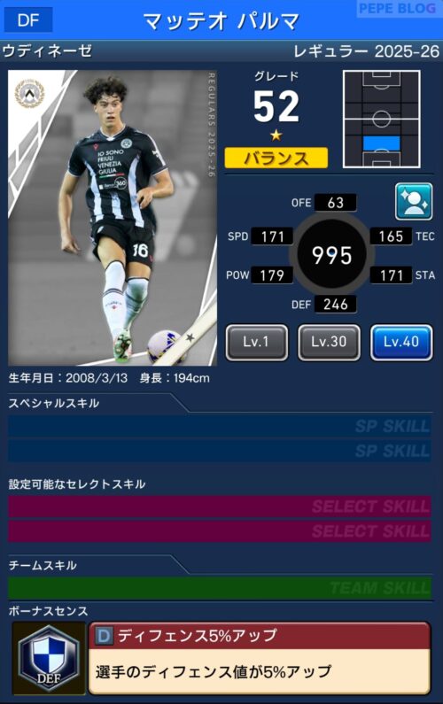 【ウイコレ】レギュラー2025-26 ウディネーゼ