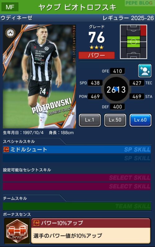 MF:☆3 グレード76 ヤクブ ピオトロフスキ