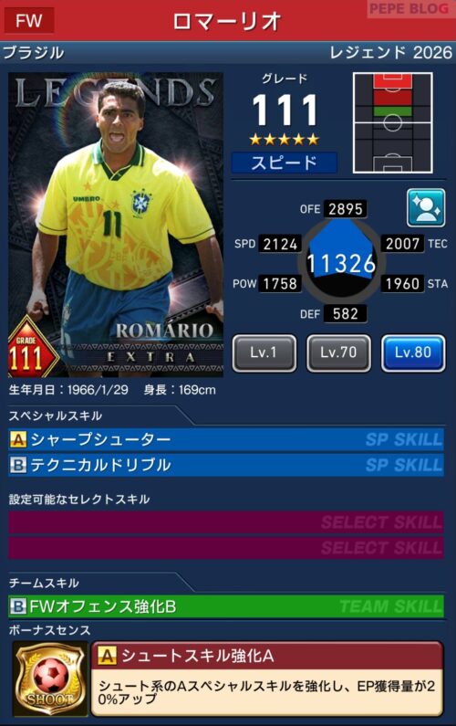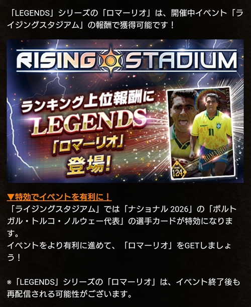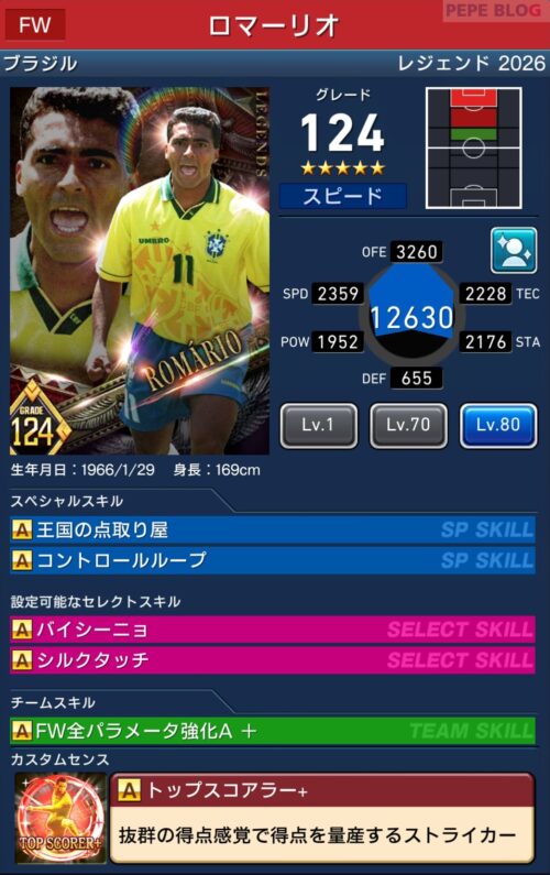 ウイコレレジェンドシリーズ2025に「ロマーリオ」が登場しました。