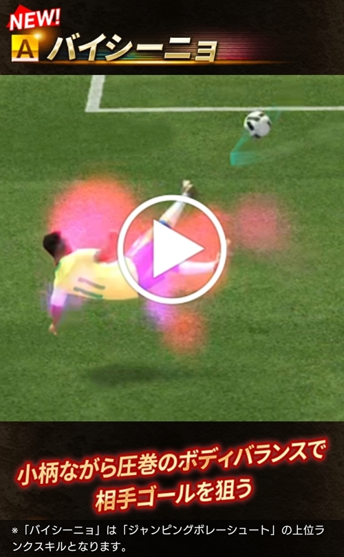 ※「バイシーニョ」は「ジャンピングボレーシュート」の上位ランクスキルとなります。