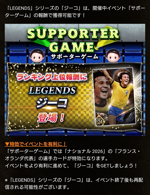 【ウイコレ】レジェンド2026 ジーコ登場!