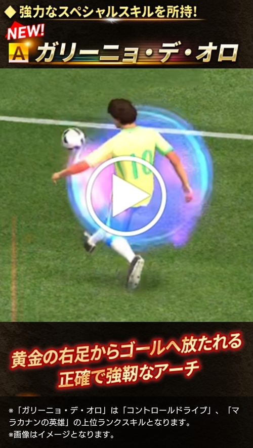 ※「ガリーニョ・デ・オロ」は「コントロールドライブ」「マラカナンの英雄」の上位ランクスキルとなります。