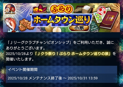 HOME > イベント > ぶらりホームタウン巡りの旅 2025年10月29日 スポンサーリンク 開催日: 2025年10月28日 3:00 PM - 2025年10月31日 2:00 PMカテゴリー: 【Jクラ】イベント スポンサーリンク 関連コンテンツ -