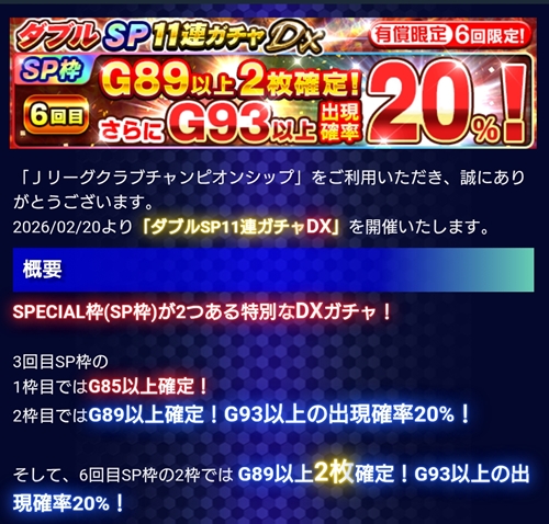 HOME > イベント > 有償限定 ダブルSP11連ガチャDX 2026年2月20日 スポンサーリンク 開催日: 2026年2月20日 2:00 PM - 2026年2月24日 2:00 PMカテゴリー: 【Jクラ】ガチャ スポンサーリンク 関連コンテンツ -