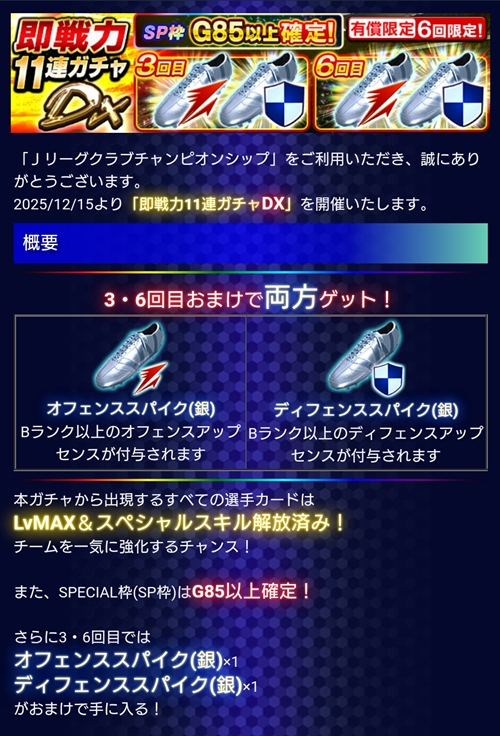 HOME > イベント > 即戦力11連ガチャDX 2025年12月15日 スポンサーリンク 開催日: 2025年12月15日 2:00 PM - 2025年12月25日 2:00 PMカテゴリー: 【Jクラ】ガチャ スポンサーリンク 関連コンテンツ -