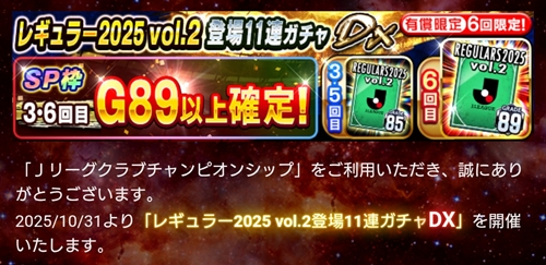 HOME > イベント > レギュラー2025vol.2登場11連ガチャDX 2025年11月2日 スポンサーリンク 開催日: 2025年10月31日 - 2025年11月10日カテゴリー: 【Jクラ】ガチャ スポンサーリンク 関連コンテンツ -