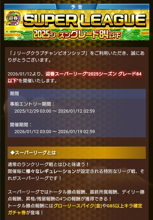 SUPER LEAGUE(2025シーズン グレード84以下)