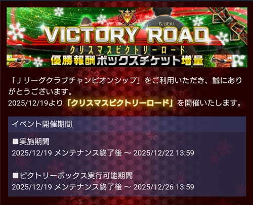 HOME > イベント > VICTORY ROAD 2025年12月23日 スポンサーリンク 開催日: 2025年12月19日 3:00 PM - 2025年12月22日 2:00 PMカテゴリー: 【Jクラ】イベント スポンサーリンク 関連コンテンツ -