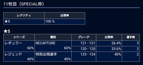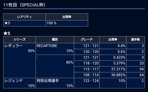 ■初回10回目:カスタムセンス所持選手確定!RECAPTURE60%、レジェンド40%
