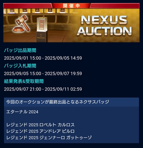 HOME > イベント > NEXUS AUCTION 2025年10月7日 スポンサーリンク 開催日: 2025年9月1日 3:00 PM - 2025年9月7日 8:00 PMカテゴリー: 【ウイコレ】イベント スポンサーリンク 関連コンテンツ -